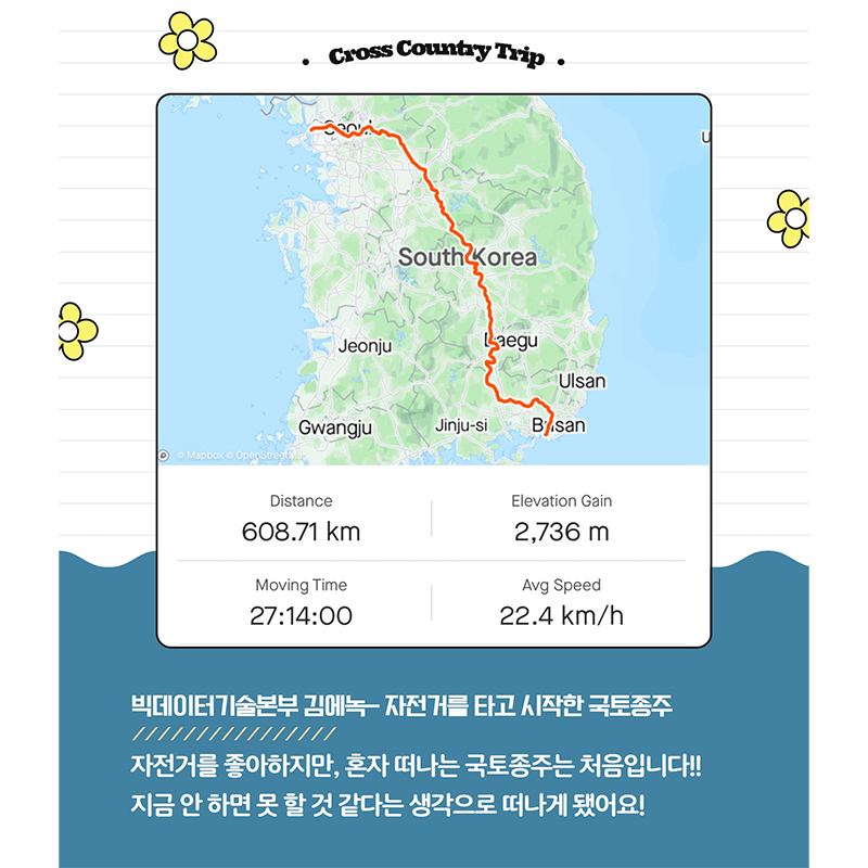 자전거를 타고 달리는 것도 여행이 될 수 있습니다.