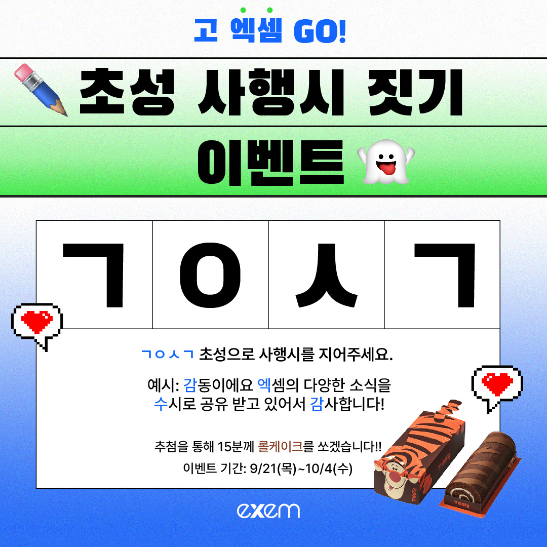 | 왕푸짐 이벤트 | 엑셈TV 4,000명으로 고! (22) | 2023.10.26 |