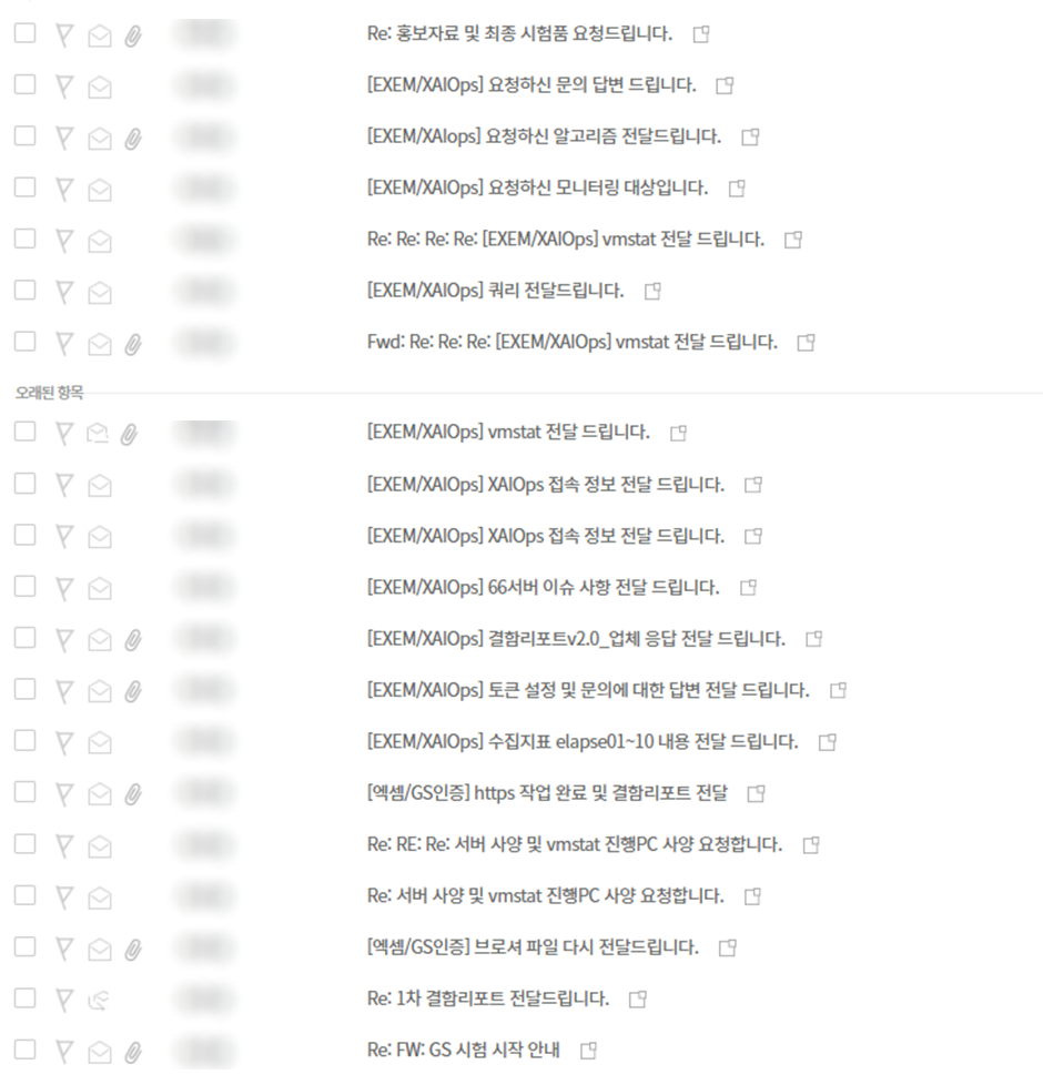 본격적으로 테스트가 진행되고, TTA 연구원과 메일과 문자, 전화가 정말 수시로, 아주 많이 오고 가게 됩니다. 제품에 대한 문의와 요구 문서에 실시간과 같이 대응하면서, 유관 본부 및 팀과도 긴밀하게 협력하게 되었습니다. 아주 일부이지만 오고 간 메일 내역입니다.