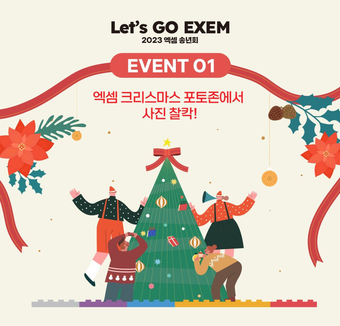 그럼요, 수고가 많은 엑세머들을 위한 파티인만큼, 엑세머들의 참여가 무엇보다 중요합니다. 사옥 곳곳에 있는 크리스마스 포토존에서 '찰칵' 컨셉 사진을 카메라로 담아 응모하면, 무려 100명에게 기프트가 있습니다. (엑세머들의 사진은 2024년 1월에 공개)