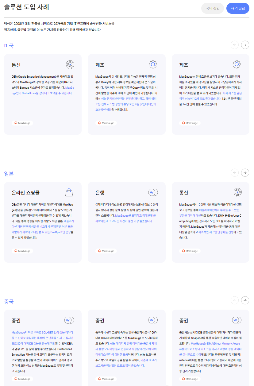 올해 10월 일본에서 MaxGauge for CloudDB를 출시하며 일본 내 확대되고 있는 클라우드 DB 모니터링 시장을 본격 공략하고 있습니다. 예상보다 빠르게 고객 반응이 오고 있습니다. 이미 대형 통신사에 계약된데 이어, 추가 도입이 기대되는 상황입니다. 일본 최대 규모의 DB 기술 컨퍼런스인 ‘DB Tech Showcase’에서 엑셈 솔루션이 선전하며 다이렉트 제품 문의가 이어지고 있다는 연말에 좋은 소식도 들려옵니다. 미국에서는 삼성 반도체 생산 기지 확장에 따라 올해 3분기부터 내년에 걸쳐 추가 사업이 지속적으로 기대되는 상황입니다.