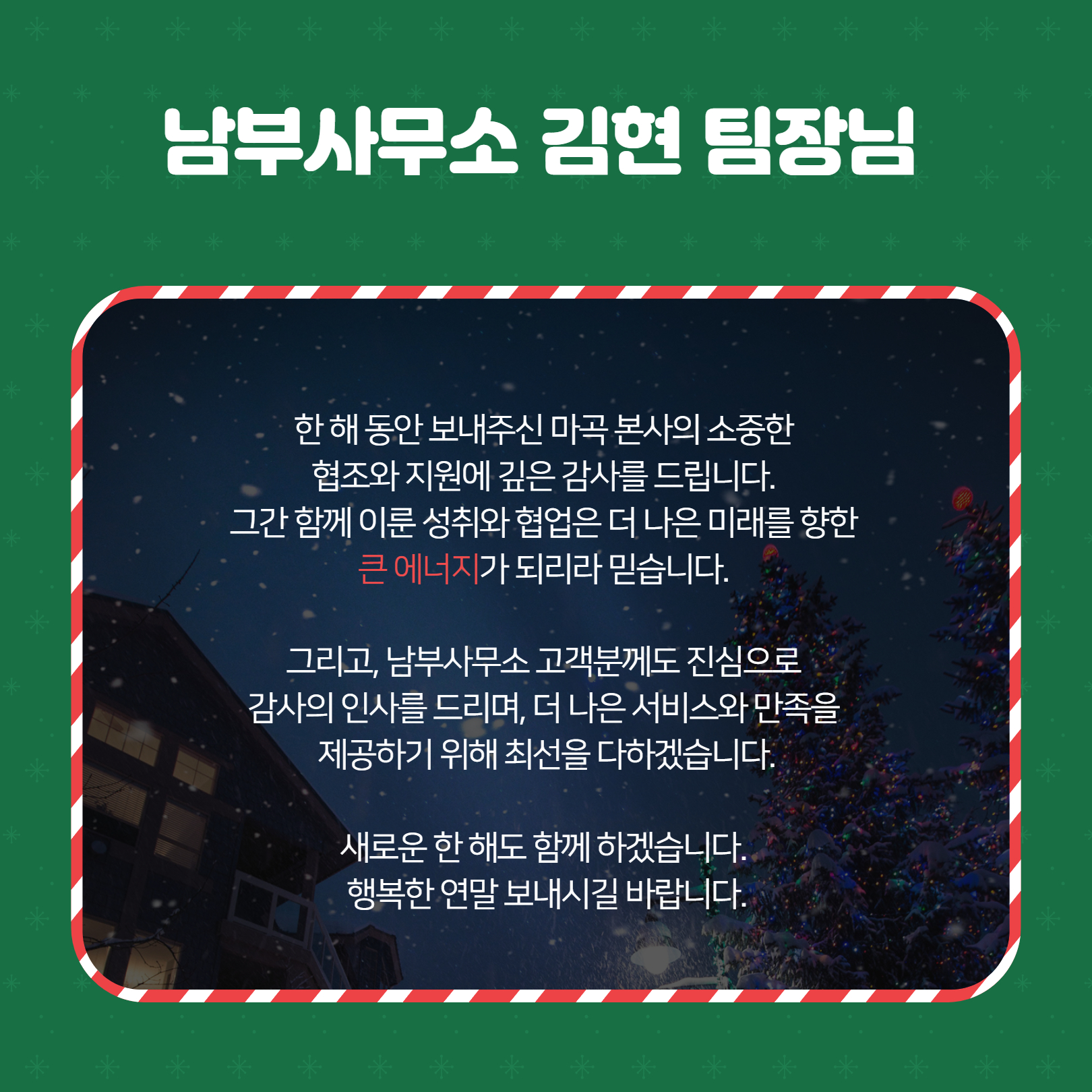 | 크리스마스 한정 엑셈 사옥, 그리고 2023 송년회 미리보기 (0) | 2023.12.27 |