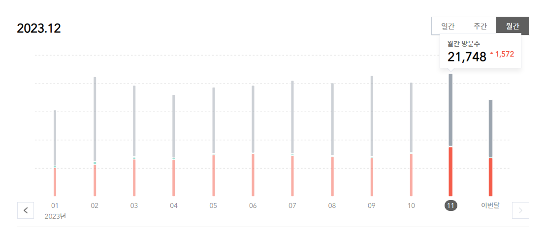 12월 27일 기준, 23년 한 해 동안 23만 명이 엑셈 블로그에 방문해주셨고, (오~ 라임이 맞아~) 오픈해서 현재까지 누적 방문수 166만을 돌파했습니다. 독자분들 덕분에 즐겁게 소통을 이어왔습니다.