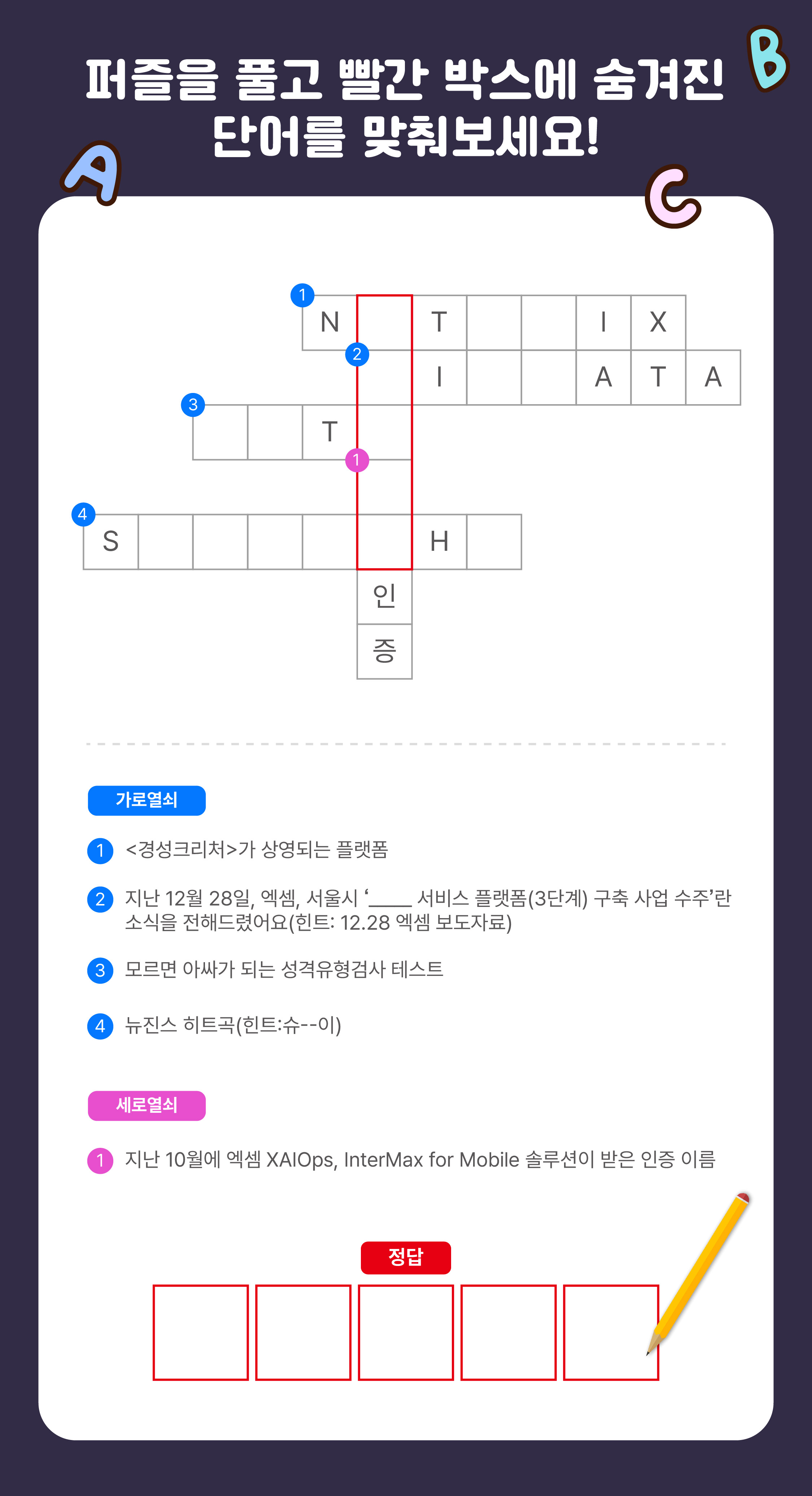 아래 퍼즐을 풀고 온가족이 사용 가능한 선물세트를 받아가세요!!