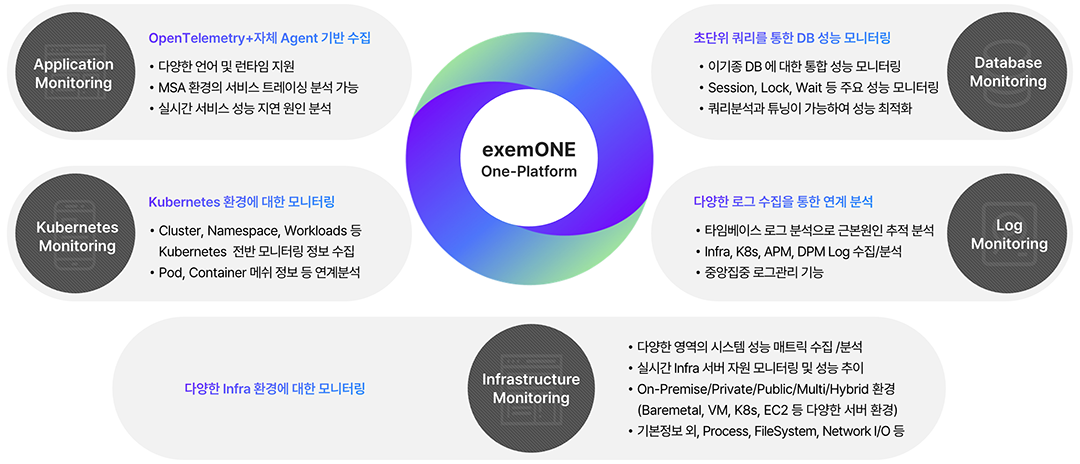 엑셈은 IT 모니터링 시장에서 웹 애플리케이션 서버(WAS), 데이터베이스 등을 포함한 다양한 포인트 솔루션 분야에서 이미 그 우수성을 입증한 기업입니다. 엑셈의 각 분야에 대한 전문성과 기술력은 곧 출시될 풀 스택 옵저버빌리티 솔루션인 exemONE을 기대하는 이유이기도 합니다.