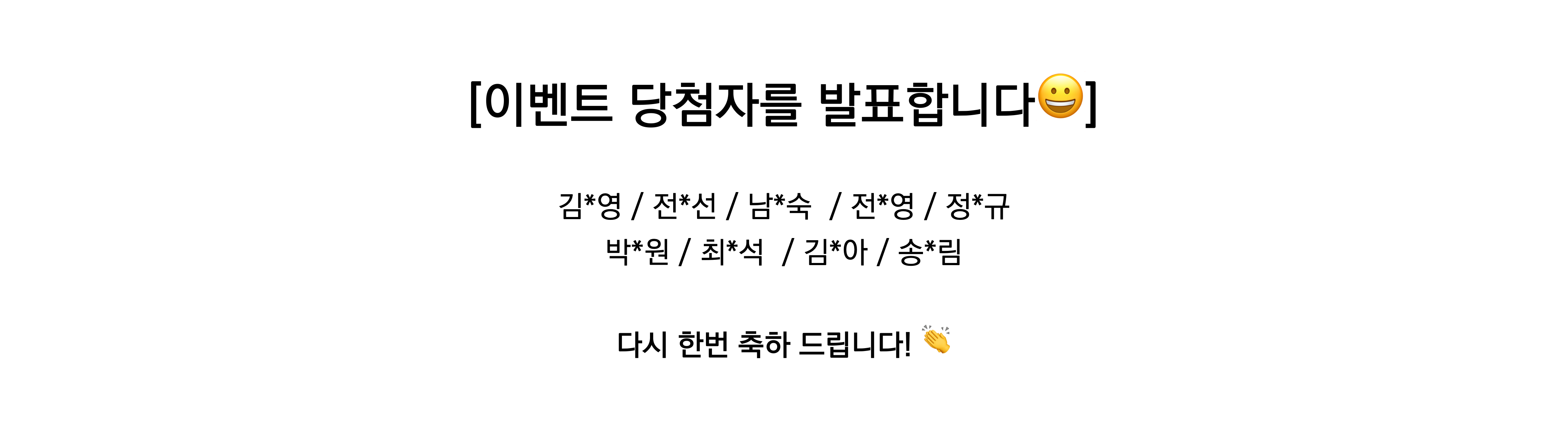 - 경품 수령(모바일 쿠폰)을 위한 이름 / 연락처를 비밀 댓글로 남겨주세요.
