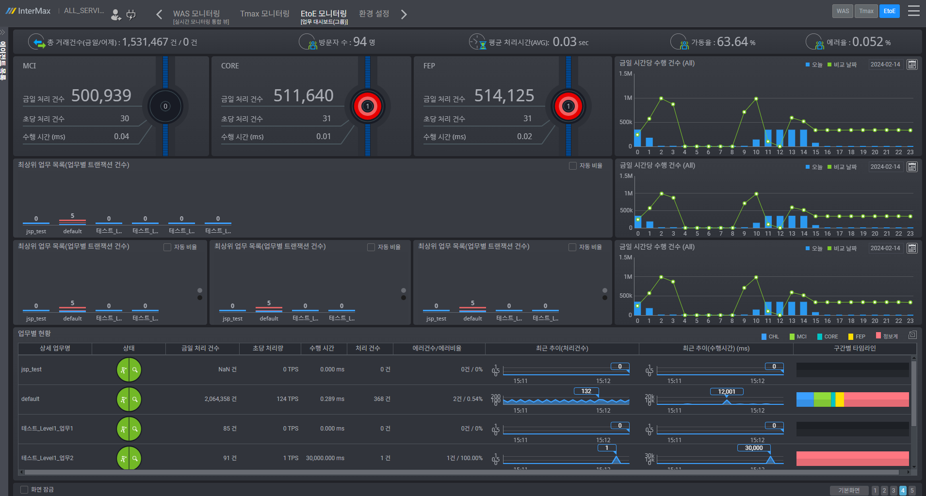 라는 말이 있습니다. InterMax E2E는 WAS에만 초점을 둔 게 아니라, 최초 사용자(단말)부터, WEB, WAS, TP를 거쳐 데이터베이스에 이르기까지, 트랜잭션 자동 추적과 연계 기능을 통해 IT 환경 전 구간의 통합 관리가 가능하기 때문입니다.