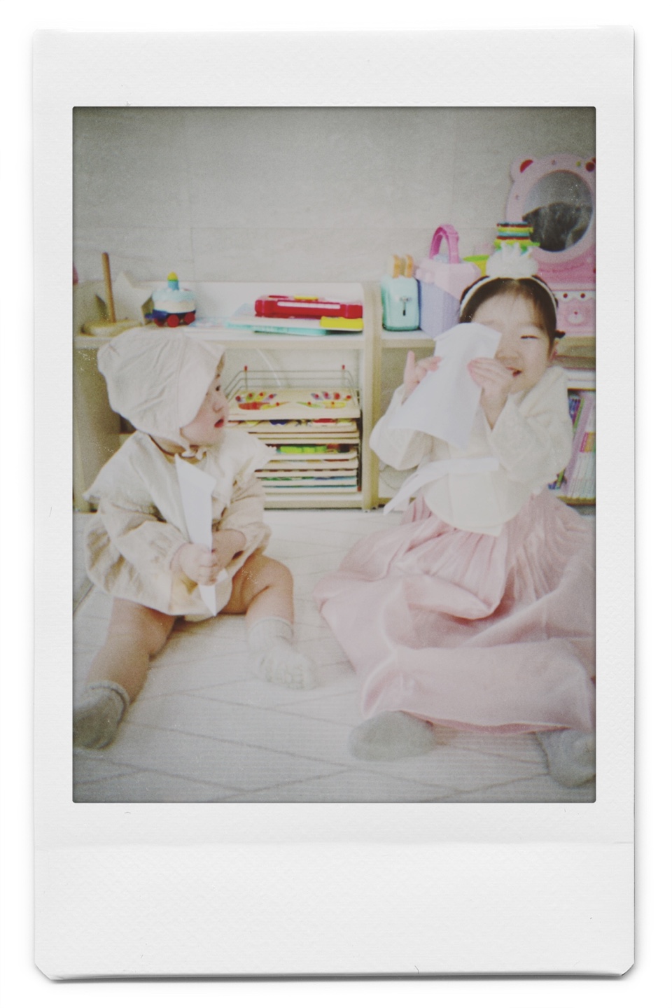 명절 내내 집에만 있으니까 딸 둘이 아주 신이 났어요.