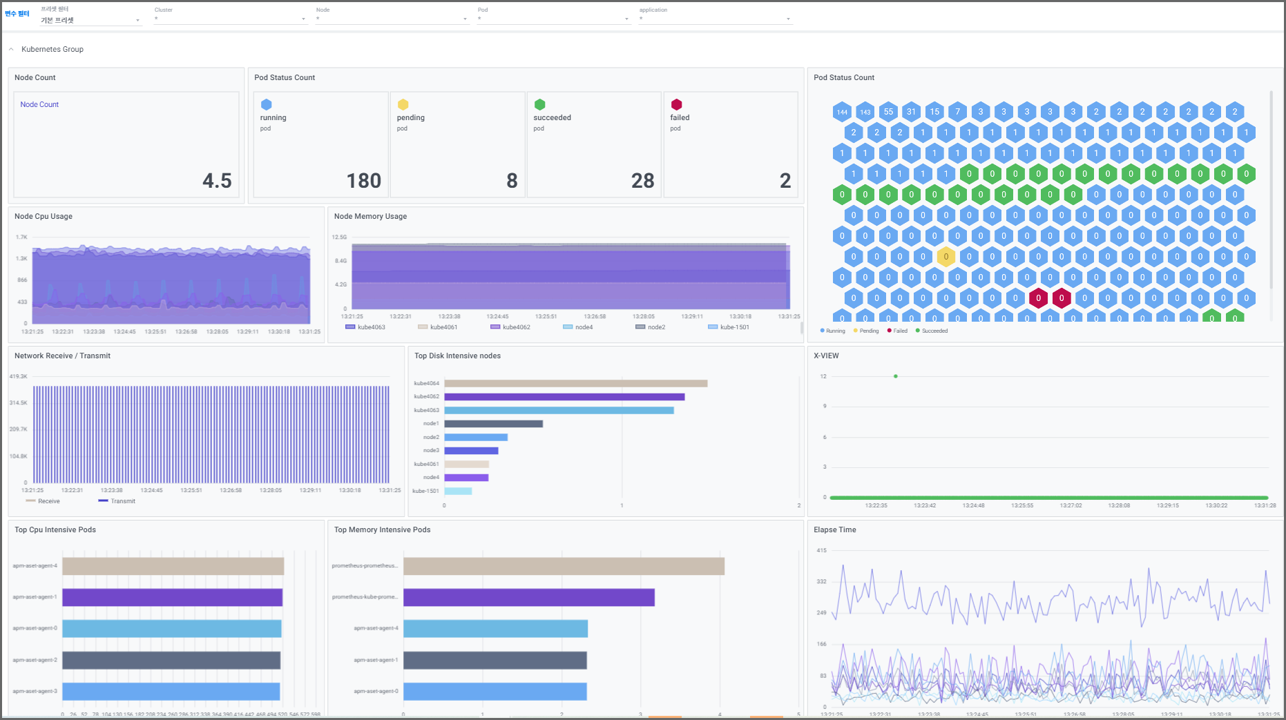 모니터링에 필요한 각 부분들을 사용자 맞춤으로 커스터마이징 할 수 있고, 관리자와 일반 유저를 구분하여 기능을 제공하기에 안전하게 사용할 수 있습니다. 만들어진 대시보드는 유연한 공유 기능을 통해 각 부서간 협업을 돕습니다.