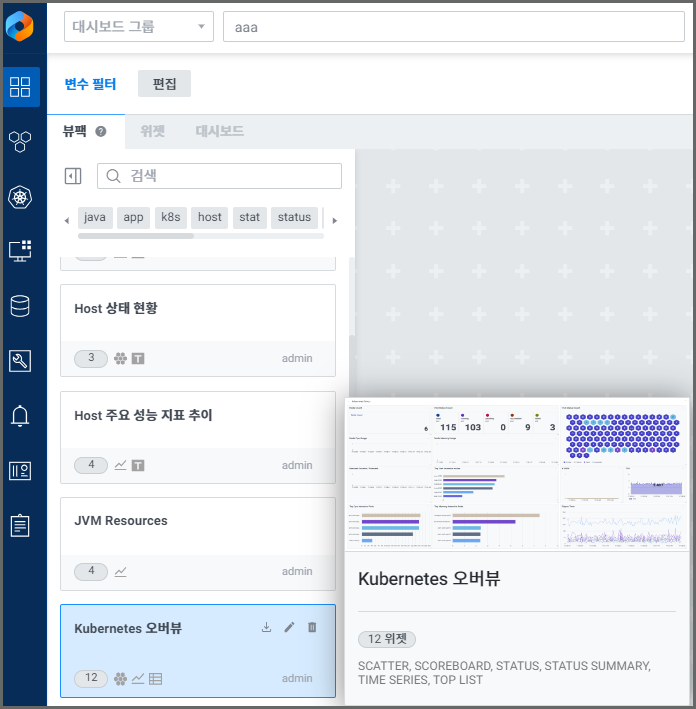 모니터링에 필요한 각 부분들을 사용자 맞춤으로 커스터마이징 할 수 있고, 관리자와 일반 유저를 구분하여 기능을 제공하기에 안전하게 사용할 수 있습니다. 만들어진 대시보드는 유연한 공유 기능을 통해 각 부서간 협업을 돕습니다.