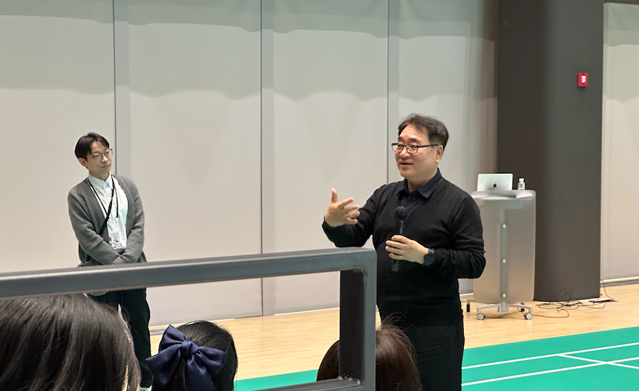 투어 참석자 중 절대적인 비율이 여성이라, 여성 IT 개발자 및 CEO의 성공 이야기를 주제로 사업협력팀 김태혁 차장님께서 발표해 주셨습니다. 흥미로운 주제에 학생들은 물론 교수님의 시선을 사로잡았고, 발표 이후에도 교수님의 추가 설명이 한참 이어졌다는 사실~