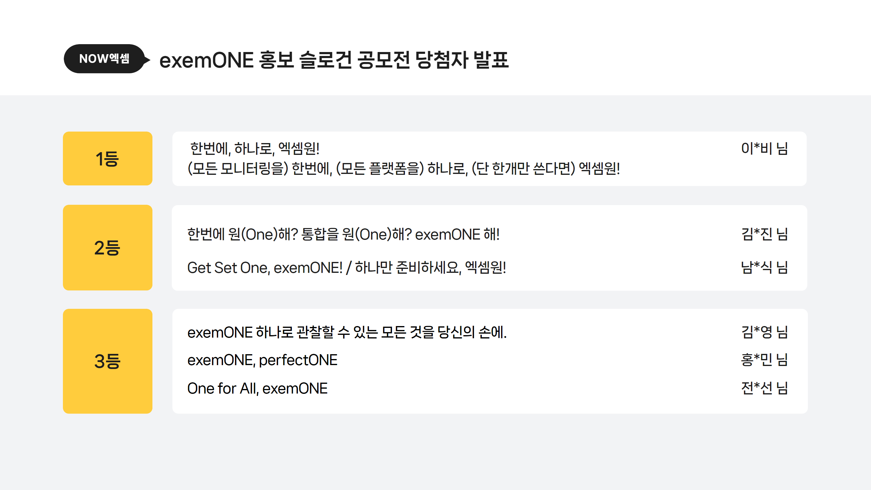 두근두근!! exemONE 홍보 슬로건 이벤트 당첨자를 발표합니다!!
