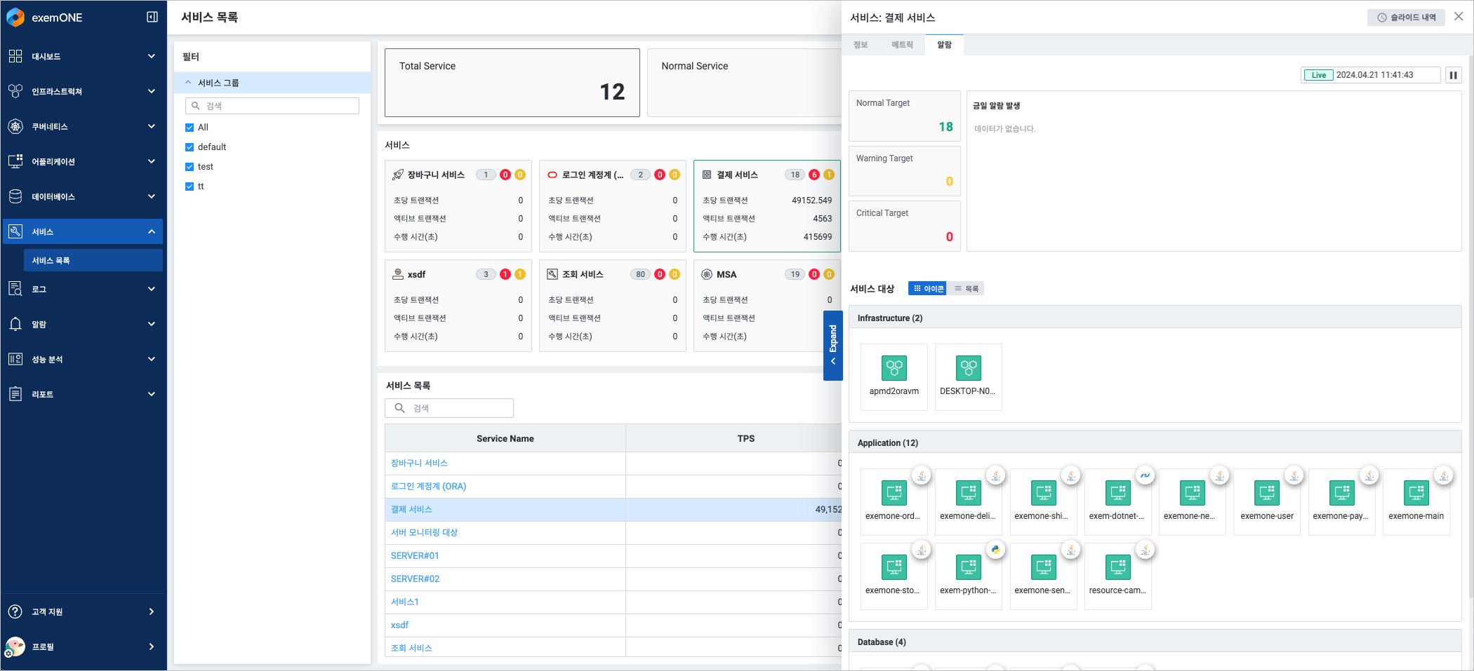 - 서비스 간 종속성 관리: MSA에서 서비스들은 서로 강하게 연결되어 있으며, 하나의 서비스에 문제가 발생하면 전체 시스템에 영향을 미칠 수 있습니다. exemONE의 연계 모니터링과 통합 모니터링은 이러한 종속성을 명확히 하고, 문제 발생 시 신속하게 대응하게 합니다.