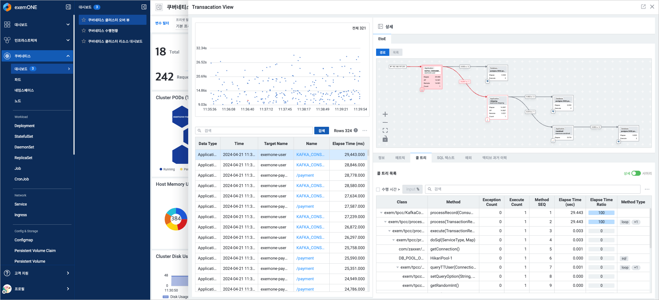 - exemONE을 통한 문제 추적 및 진단 기능은 개발자가 시스템 전반에 걸쳐 문제를 빠르게 식별하고 해결할 수 있도록 돕습니다. 특히, MSA 환경에서 발생할 수 있는 복잡한 문제도 시각적 도구를 통해 빠르게 위치를 파악하고 해결 방안을 도출합니다.