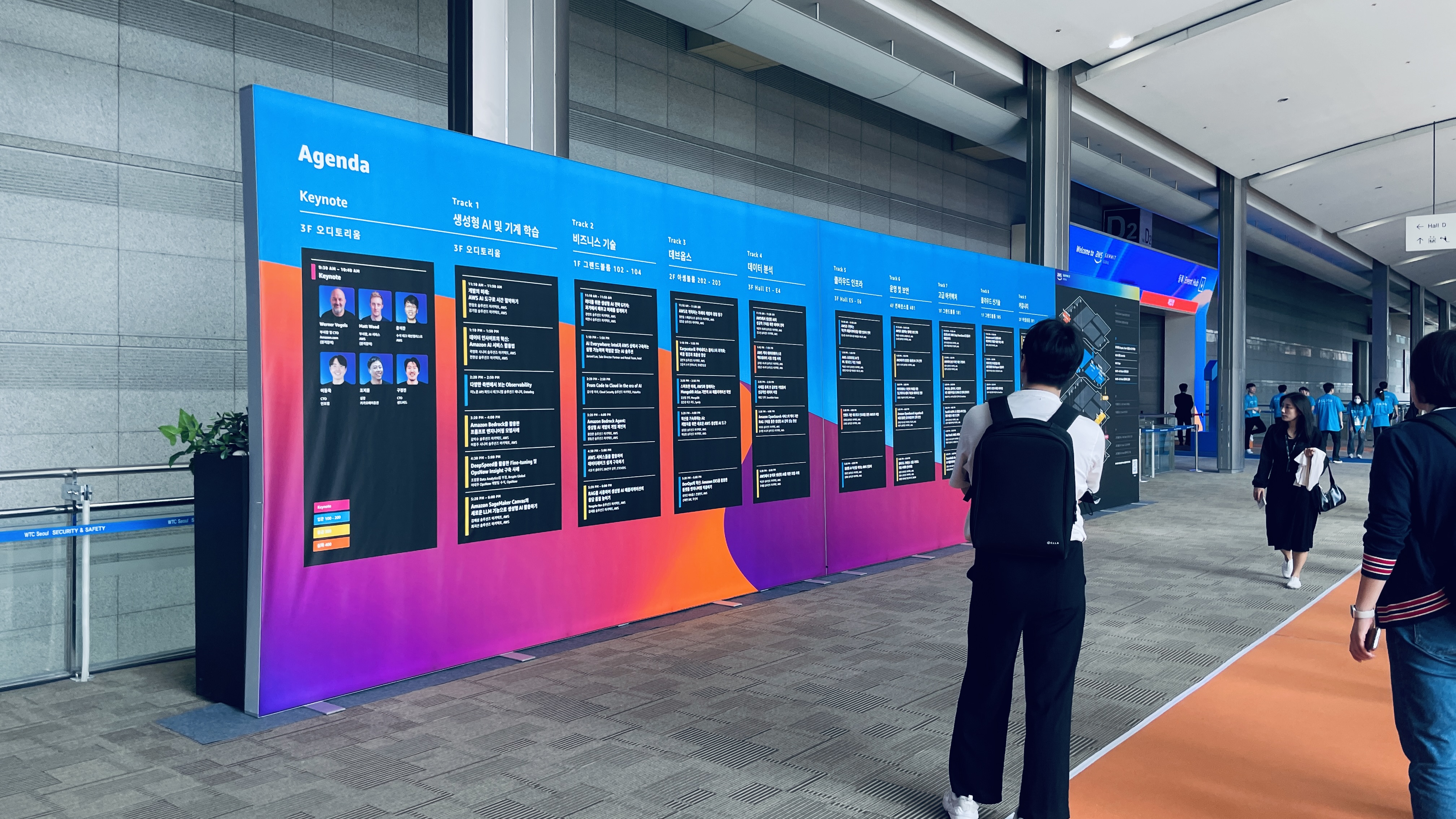 올해 10주년을 맞이한 AWS Summit은 IT인들의 향연(饗宴)이라고 해도 과언이 아닐 정도로 한국뿐만 아니라 해외에서도 많든 분들이 찾아오셨어요. 은근한 조명과 행사장에 시종일관 깔렸던 BGM까지 굉장히 힙하고 활기찬 느낌이라 이틀 내내 에너지 뿜뿜한 컨디션으로 마주하게 되었어요. 엑셈 부스로 안내해드리기에 앞서, 이번 Summit의 전반적인 후기를 공유할게요.