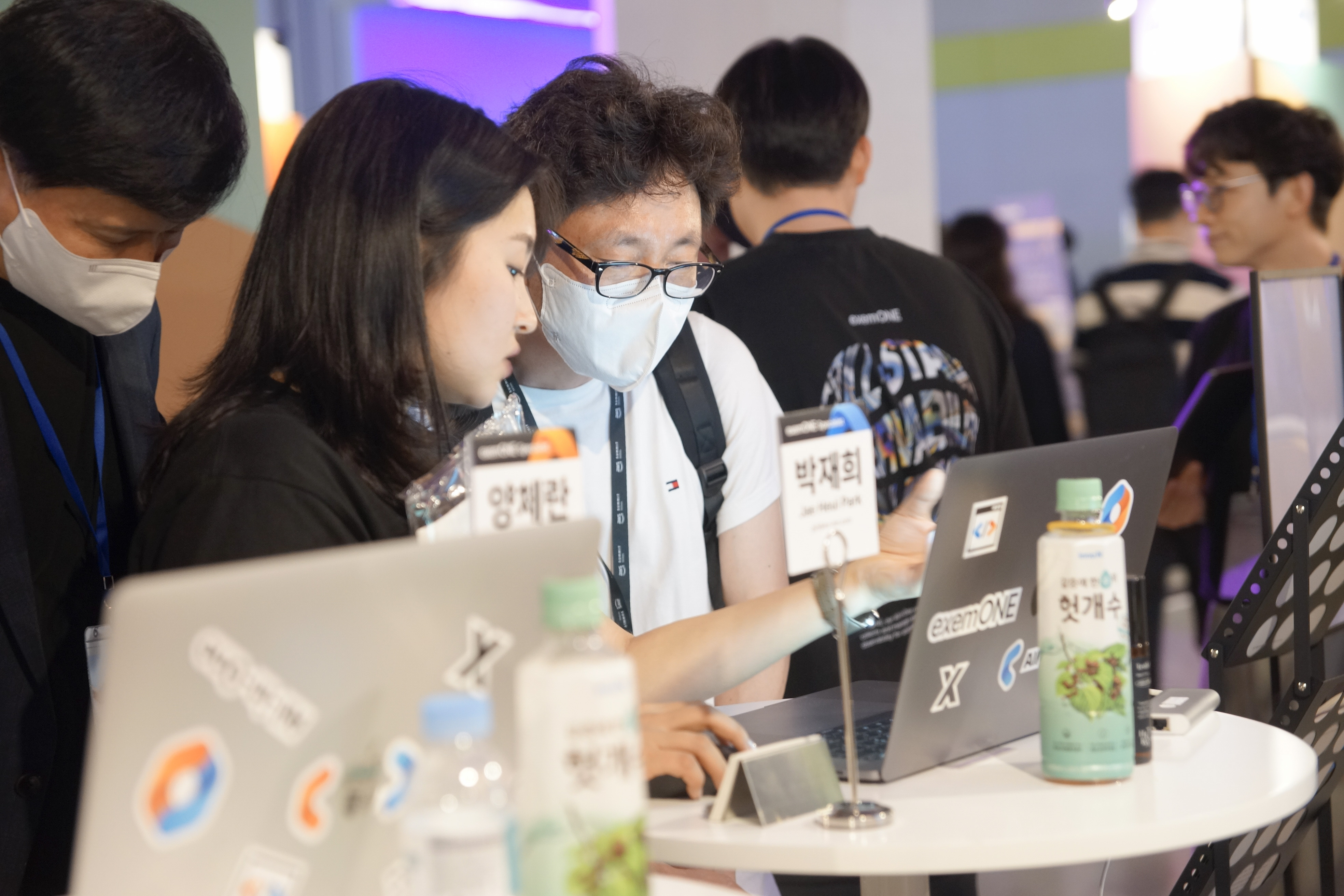엑셈 부스의 B컷도 공개합니다. ㅎㅎ 이런게 재밌죠! 이 자리를 통해 함께 고군분투한 브랜드 디자인팀께도 감사의 마음을 전합니다. (우리 항상 ONE팀)