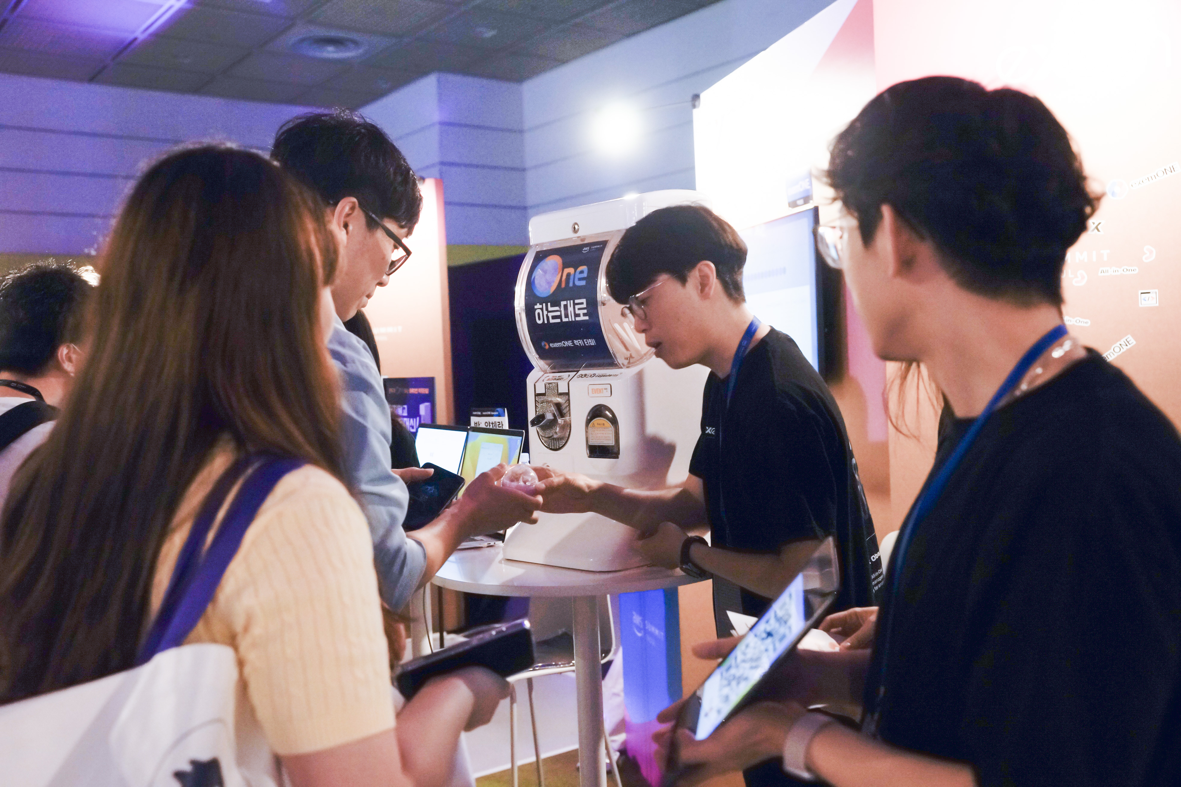 몇 년만에 오프라인에서 고객분들과 만나는 자리라 엑셈 부스에 오신 한 분 한 분의 양손을 가득 채워드리고 싶은 마음이 컸어요! 그래서 준비한 뽑기 이벤트. 기프트로 캡슐 커피머신과 스벅 상품권 5만원권, 선풍기, 엑셈 제작 티셔츠 등을 아낌없이 준비했습니다. SNS 채널 구독만 해도 exemONE 장바구니를 겟하셨구요.