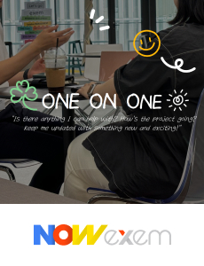 몰입을 위해 3가지 전제 조건이 필요합니다; 명확한 목표, 의미있는 도전, 그리고 즉각적인 피드백입니다. 엑셈에 매일 아침, 자신의 데일리 업무 계획을 본부원에게 공유하는 사람이 있습니다. 지난 달 NOW엑셈에서 인터뷰한 인사 교육 전문가 박준서 이사님(인터뷰 내용이 궁금하시면 여기를 클릭)입니다. 메일을 받는 사람은 본부장님의 스케줄만 알게 되는 것이 아니라, 업무를 대하는 자세와 우선순위에 따라 해결돼야할 일을 파악하고, 나의 일로 생각이 전환됩니다. 마찬가지로 나의 업무 우선순위를 생각하고 액션이 취해집니다. 이제 즉각적인 피드백이 남았습니다. 이는 나 혼자의 노력으로는 불가능하며, 무조건 제3자를 통해 가능한 일입니다. 그래서! 이 때 필요한 게 One on One입니다. 이름 그대로 1 대 1 소통을 하는 것입니다. 진행 과정을 공유하고, 본인만이 가지고 있는 다양한 고민과 해결되지 않은 문제점 등에 대해 허심탄회하게 이야기를 나누면서 생각을 주고받게 됩니다.
