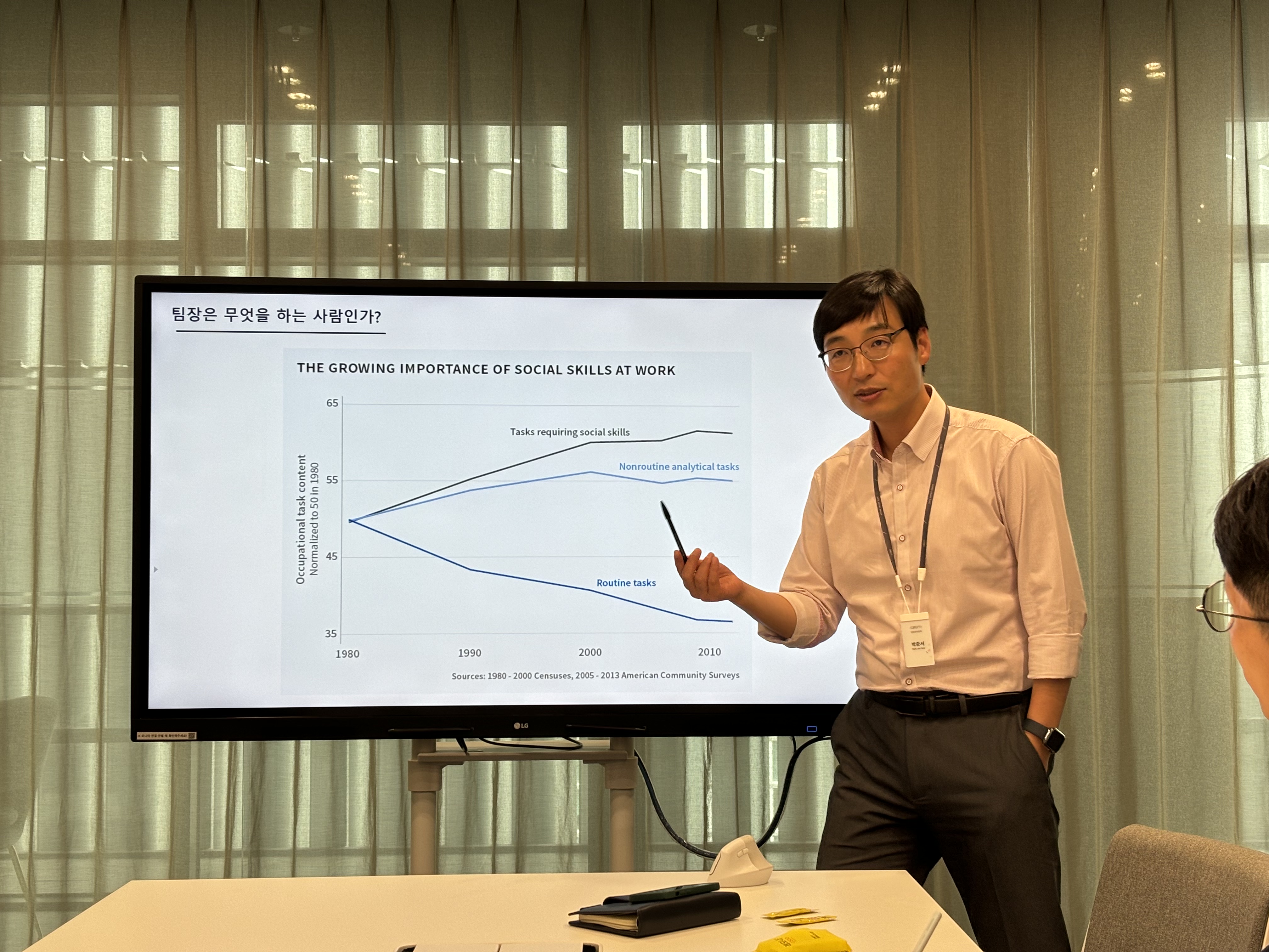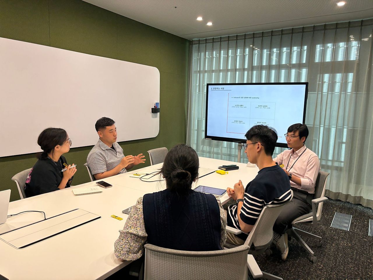 이날 리더십 교육에 참석한 제품기술연구그룹 팀장님 4분께서 각각 팀원을 어떻게 분류할지, 그리고 팀장으로서 현재 겪고 있는 문제점을 털어놓고 함께 해결방안을 찾는 것에 대해 의견 나눴습니다.