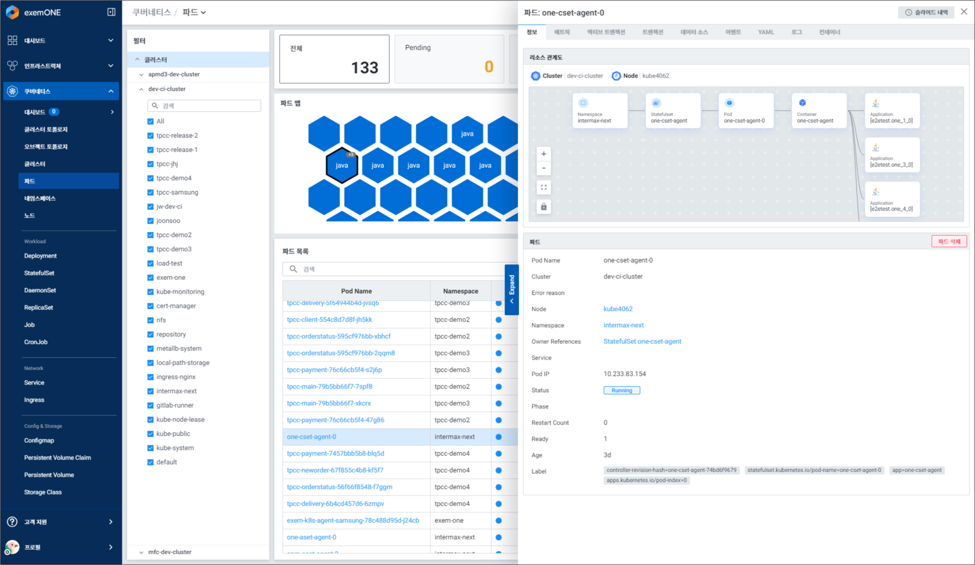 ▲ 엑셈원 ‘쿠버네티스 리소스 상관관계 뷰’ 화면