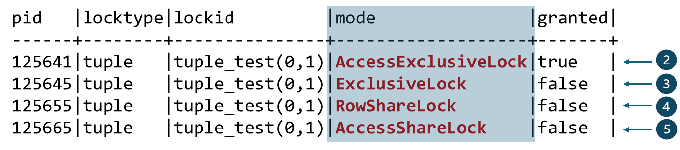 T2) Row-level Lock: FOR UPDATE -> Tuple HWLock: AccessExclusiveLock