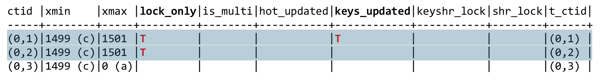CASE WHEN t_infomask & 128 = 128 THEN 'T' end as LOCK_ONLY,