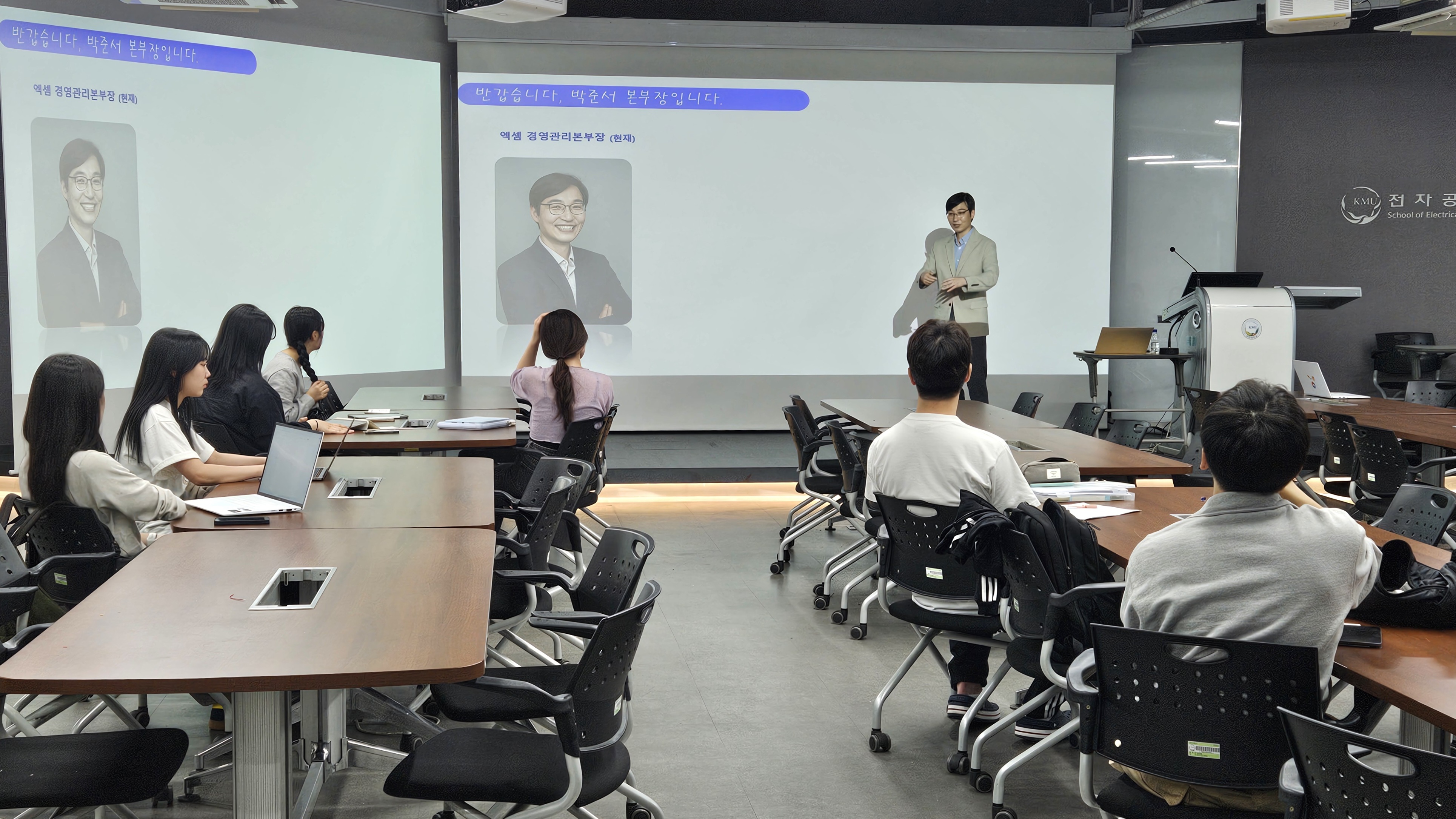 안양여고에 이어, 엑셈에서 준비한 진로 특강은 국민대로 향했습니다. 날씨가 좋아서 외근하는 맛이 제대로 나는 날이었습니다. 하지만, 날씨보다 더 좋았던 건, 학생들의 반응이었습니다. 취업을 앞두고 있는 대학생들이었기에 현실적인 질문과 답이 많이 오고 갔습니다.