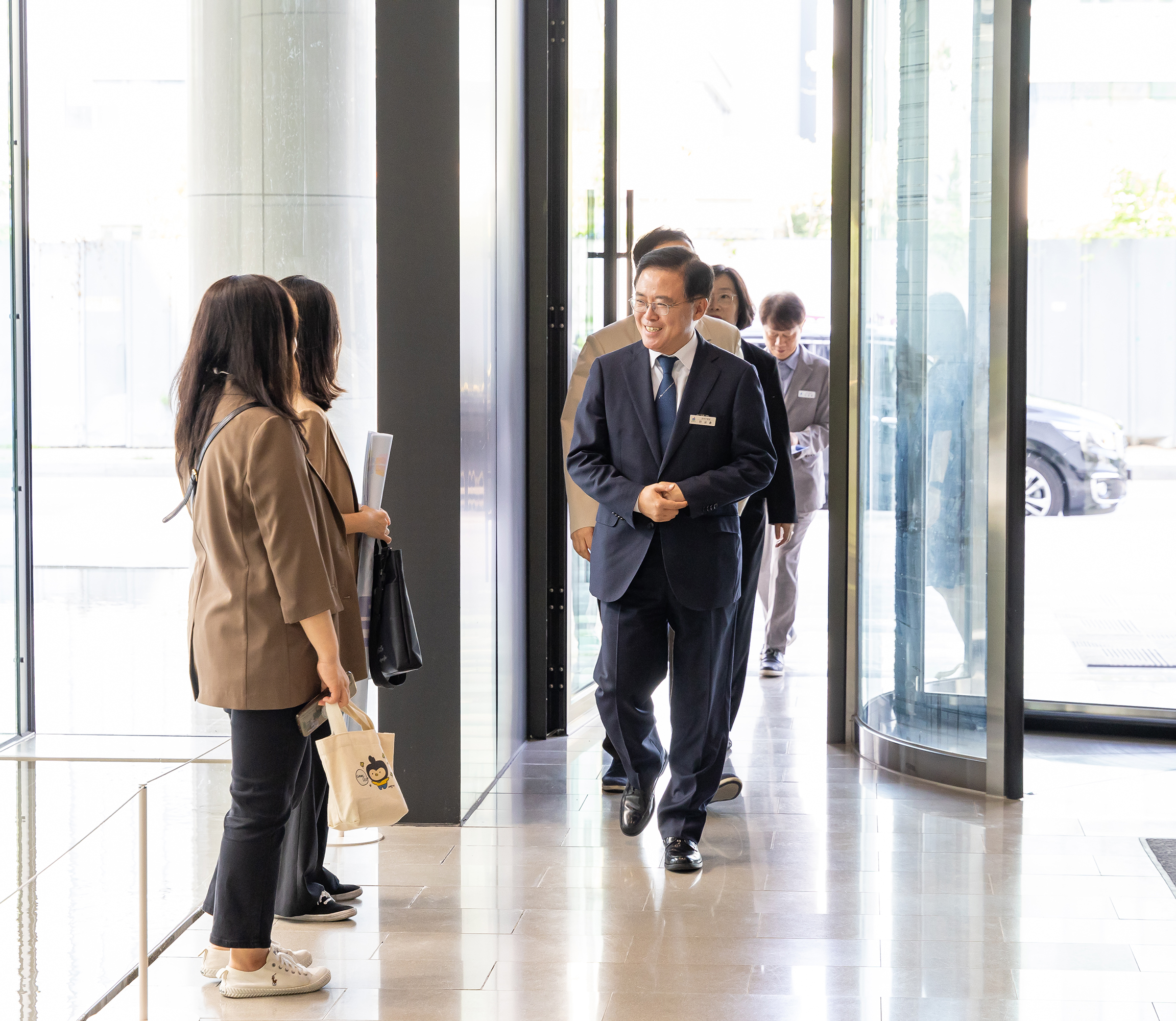 강서구청과 함께 기획하여 강서구 관내에 있는 고등학교 학생들을 초대해 3일 간 기업 탐방 프로그램을 운영했습니다. 그리고 프로그램 첫 날에 진교훈 강서구 구청장님도 직접 엑셈에 방문해주셔서 너무 영광이었습니다.