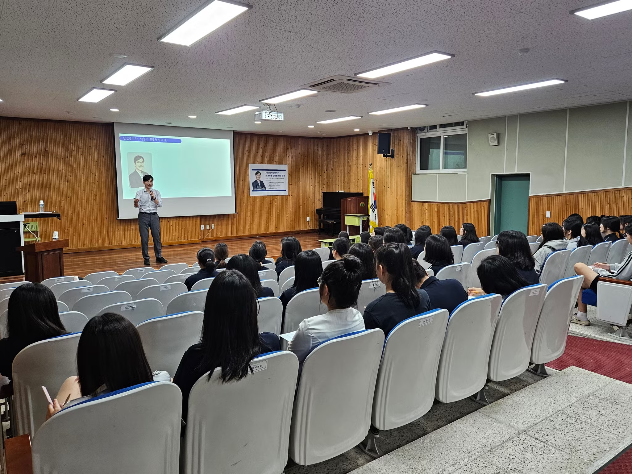 그래서 엑셈 1등 강사가 여러분들이 대학교에서 어떤 공부를 하게 될 지, 그런 지식들은 나의 미래의 직장에서 어떻게 활용될지, 그리고 실제 기업에서 어떤 인재를 찾고 있는지 등 다양한 이야기를 전해주기 위해 이 번에는 여고에 출동했습니다.