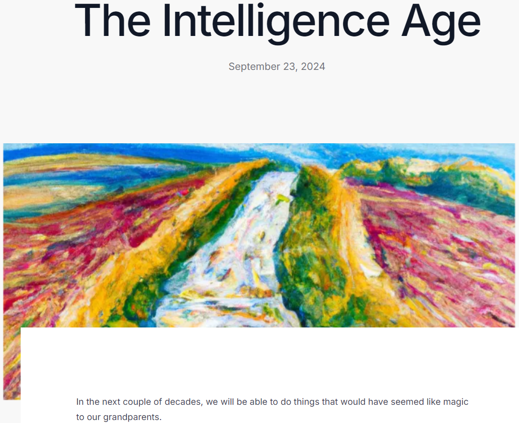 샘 올트먼은 석기시대, 농업 혁명 시대, 산업 혁명 시대에 이어 인류가 ‘인텔리전스 시대(The Intelligence Age)’의 초입에 들어섰다고 단언했습니다. 지난 9월 12일 OpenAI가 공개한 새로운 추론 전문 모델 ‘o1-프리뷰(preview)’를 개발하면서 샘 올트먼은 AI의 퀀텀점프가 임박했다는 것을 직감했을까요? AI가 인간의 지능을 능가하는 ‘싱귤래러티(Singularity, 특이점)’가 정말 도래할지 궁금해집니다. 그 순간은 거짓말처럼 어느 날 갑자기 찾아올지도 모릅니다. 얼마 전 하루 만에 기온이 급강하하면서 불현듯 가을이 온 것처럼요.