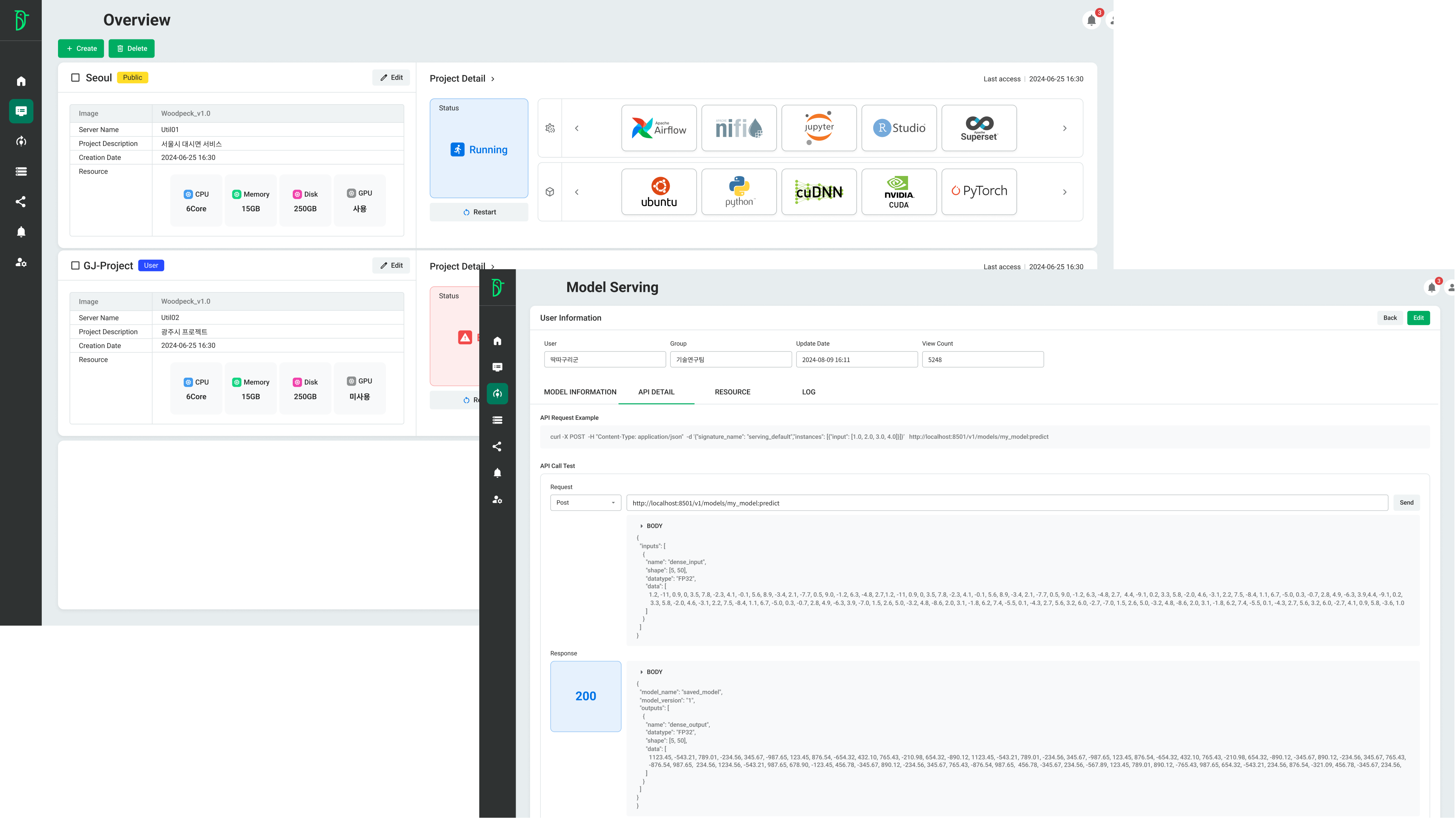 - API를 통해 모델을 배포하여, URL을 통해 모델을 실행하고 빠르게 결과 확인이 가능합니다.