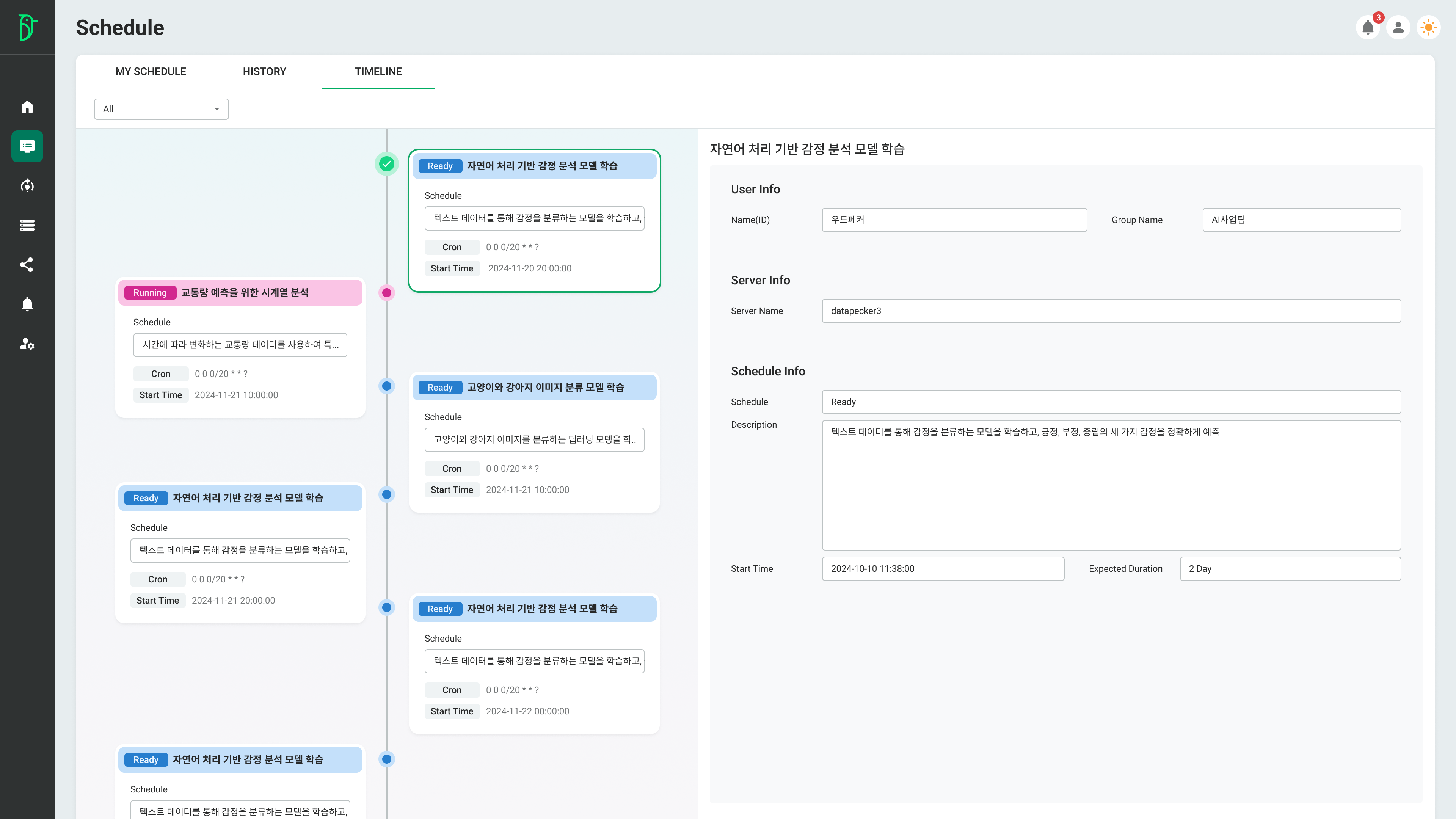 - 전체 사용자 스케줄을 타임라인으로 확인할 수 있습니다.