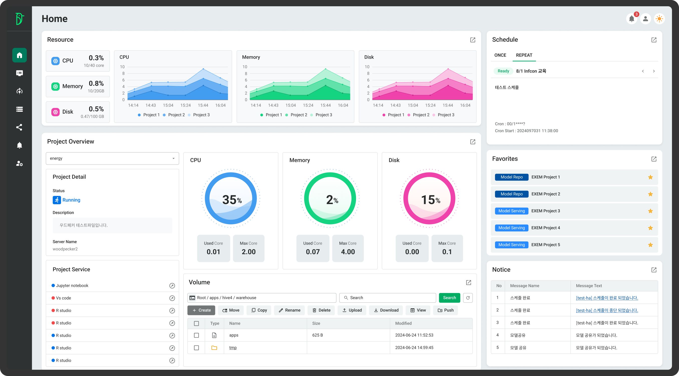 이 외에도 노드별 리소스 모니터링은 AI 분석 인프라 관리에 필요한 시간과 수고를 경감시켜준다. 특히 우드페커의 자체 시각화 기능은 별도의 시각화 툴 없이도 데이터를 다양한 차트로 시각화하여 패턴 분석, 이상치 파악 등 인사이트를 발굴할 수 있도록 도와준다.