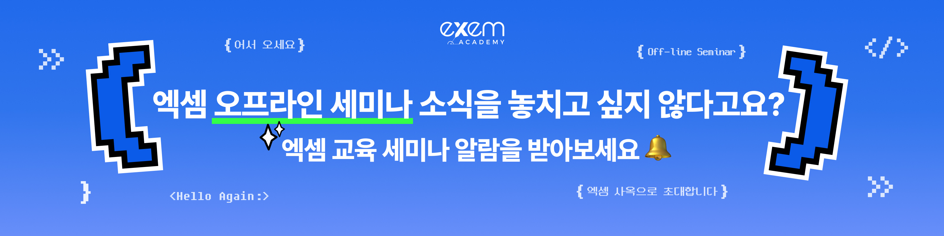 책 기반으로 현재 오프라인 세미나도 열심히 준비하고 있습니다. 2025년 상반기에 오픈할 계획이며, 모두의 바람과 같이 엑셈 사옥에서 책 관련 내용으로 여러분들과 소통하는 그날이 빨리 오길 바랍니다. (아래 이미지를 클릭해 '2025 엑셈 세미나 일정' 알람 을 받아보세요)
