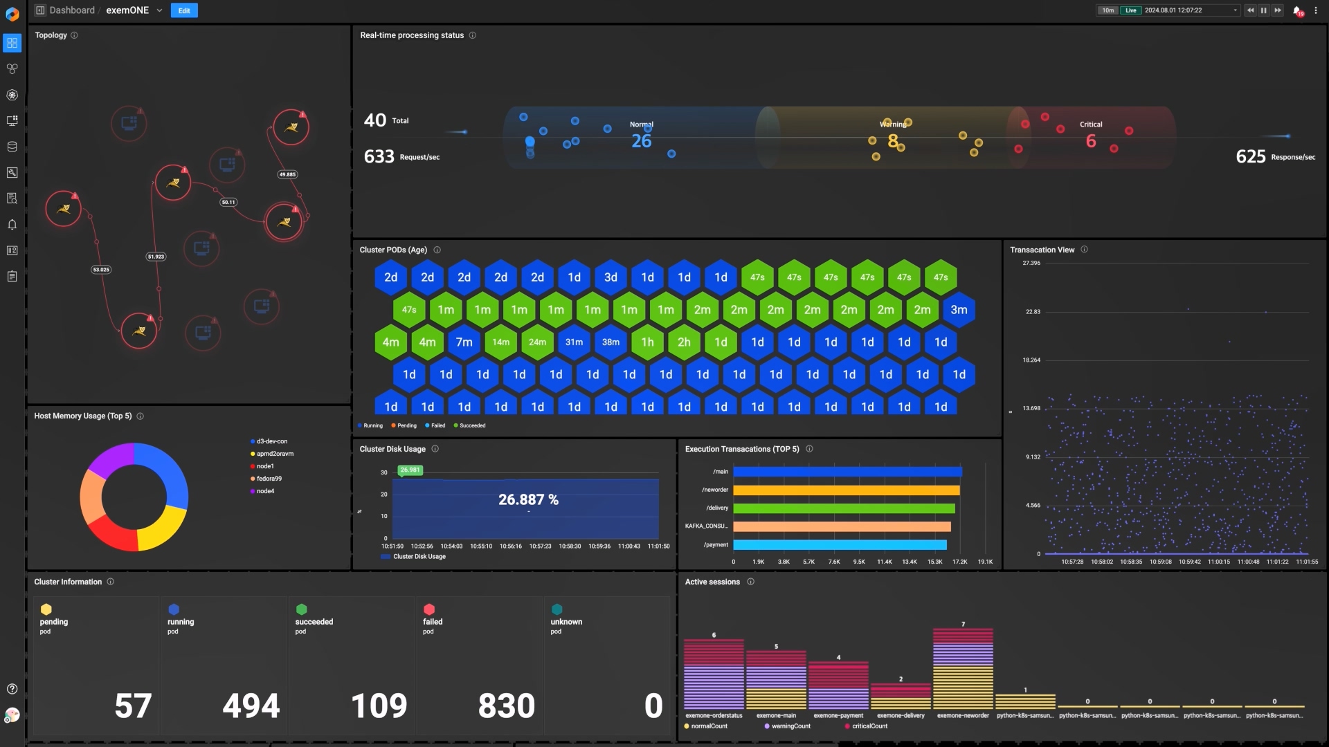 엑셈원은 옵저버빌리티의 3대 축이라 불리는 메트릭(metrics), 트레이스(traces), 로그(log)를 수집해 시각화하기 때문에 사용자는 IT 시스템 전 영역을 하나의 플랫폼에서 한눈에 관찰할 수 있다. 데이터베이스, 애플리케이션, 쿠버네티스(K8s), 서버, 네트워크 등 하이브리드 클라우드 환경의 모든 핵심 구성 요소의 장애 상황을 엑셈원만으로 모두 확인할 수 있는 것이다. 또한 엑셈원은 Oracle, SQL Server, MySQL/MariaDB, PostgreSQL, MongoDB, Cubrid, Redis를 비롯한 인기 상용 DB 및 오픈소스 DB 중 대부분을 지원하고 있다. 국내 공공 부문이나 증권사에서 많이 사용되는 Tibero, Altibase도 곧 지원할 예정이다.