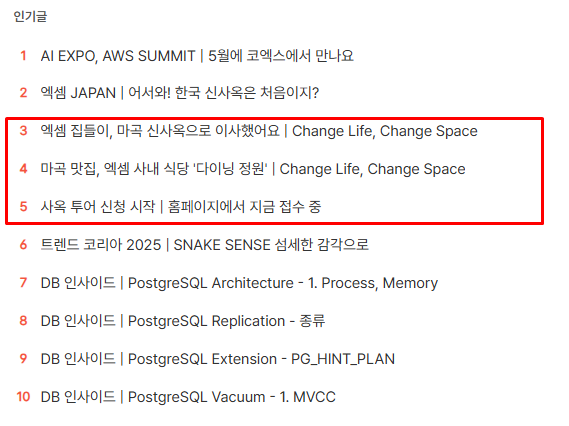 루나PD: ‘사내 복지’를 키워드로 검색하니, 엑셈이 나왔어요. 이어 엑셈 관련 글을 하나 둘 따라가다 보니 ‘엑셈 블로그’로 연결되었고, 재미난 사내 소식들, 기업 문화와 관련된 글들을 보면서 ‘여기다, 이 곳을 가봐야겠다’ 생각했슴다.