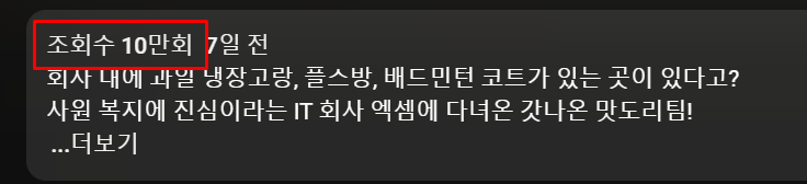 대기업 보도본부의 힘이란 이런 것일까? 업로드 되자마자 조회수 2,000을 찍더니, 6일 만에 10만을 넘었습니다. 십!만!명이 엑셈 홍보 영상을 봤다는 뜻입니다. 123만 구독의 힘을 새삼 느꼈네요~
